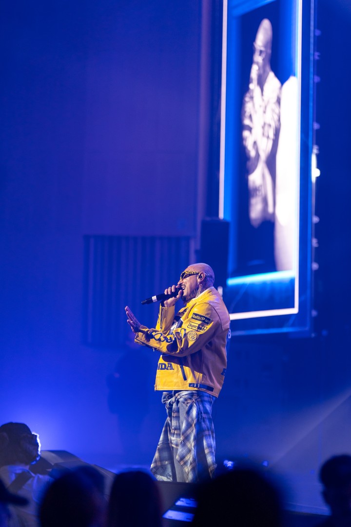 Romanian singer Alex Velea performs at Sala Palatului in Bucharest on 24 February, 2026.