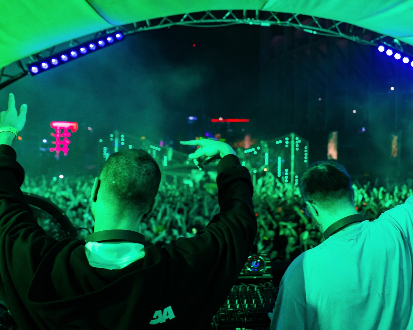 Ukrainian deejays and producers Artur & Batish, better known by their artist name ARTBAT, perform on stage on the last day of the SAGA Festival in Bucharest, Romania on June 5, 2022.