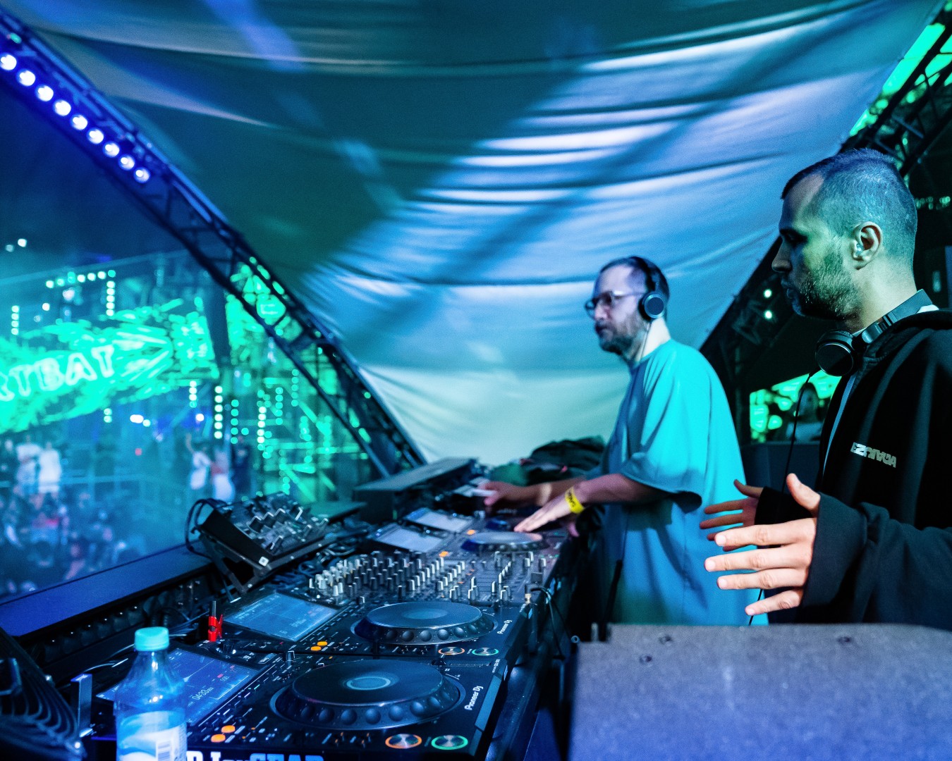 Ukrainian deejays and producers Artur & Batish, better known by their artist name ARTBAT, perform on stage on the last day of the SAGA Festival in Bucharest, Romania on June 5, 2022.