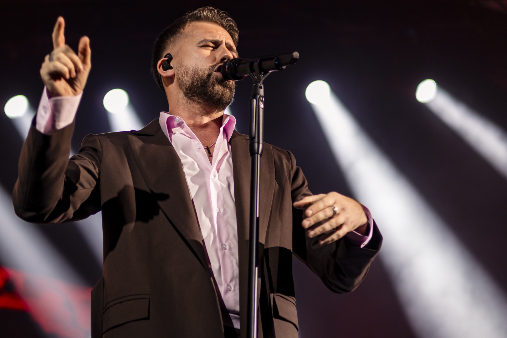 Romanian singer Florin Ristei performs during the show "Trip" at Sala Palatului in Bucharest, Romania on March 11, 2026.