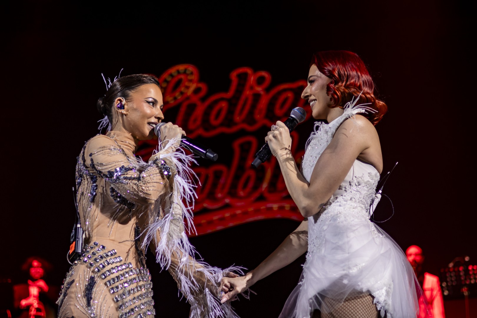 Romanian pop singer Lidia Buble performs with romanian dance singer AMI during the show "Simțim la fel" at Sala Palatului in Bucharest, Romania on February 27, 2026.