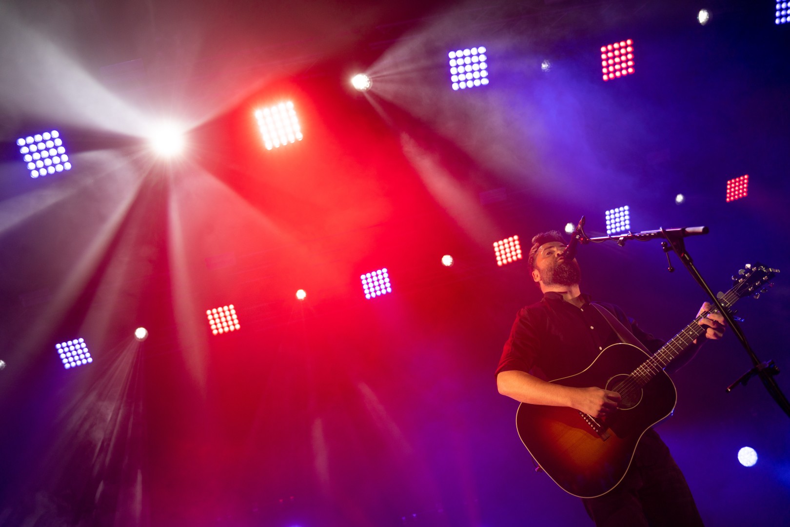 British singer Michael David Rosenberg, known professionally as Passenger, performs at Arenele Romane in Bucharest, Romania on April 9, 2023. He was initially the main vocalist and songwriter for the band called Passenger but decided to keep the band's name for his solo work after they dissolved in 2009. Rosenberg's major breakthrough came in 2012 with the release of his hit song "Let Her Go," which topped the charts in 16 countries and garnered more than 3 billion views on YouTube.