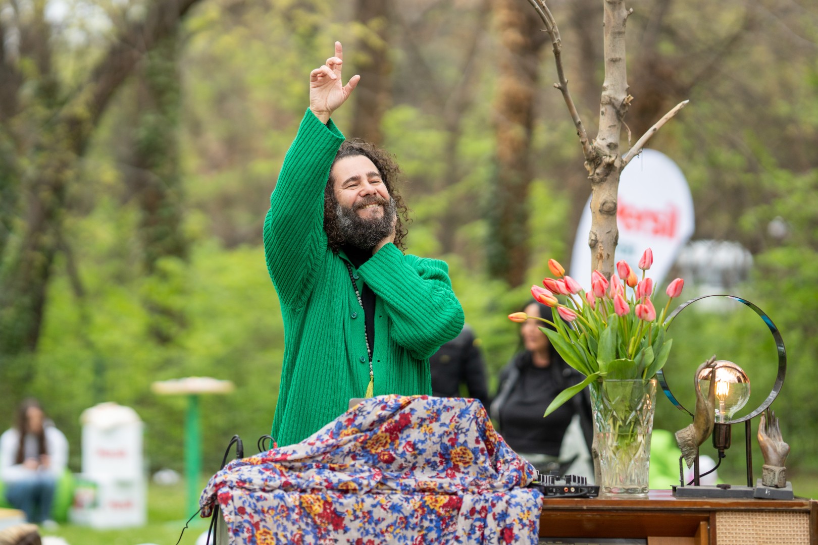 Romanian DJ Pixar Stelar performs at the Bucharest Street Food Festival in Bucharest, Romania on April 12, 2025.