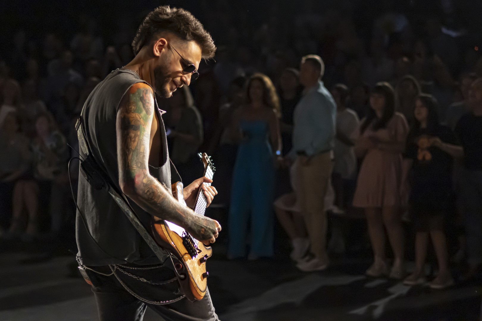 Romanian pop-rock band VUNK performs during Rooftop Season at Amfiteatrul TNB in Bucharest, Romania on August 27, 2024.