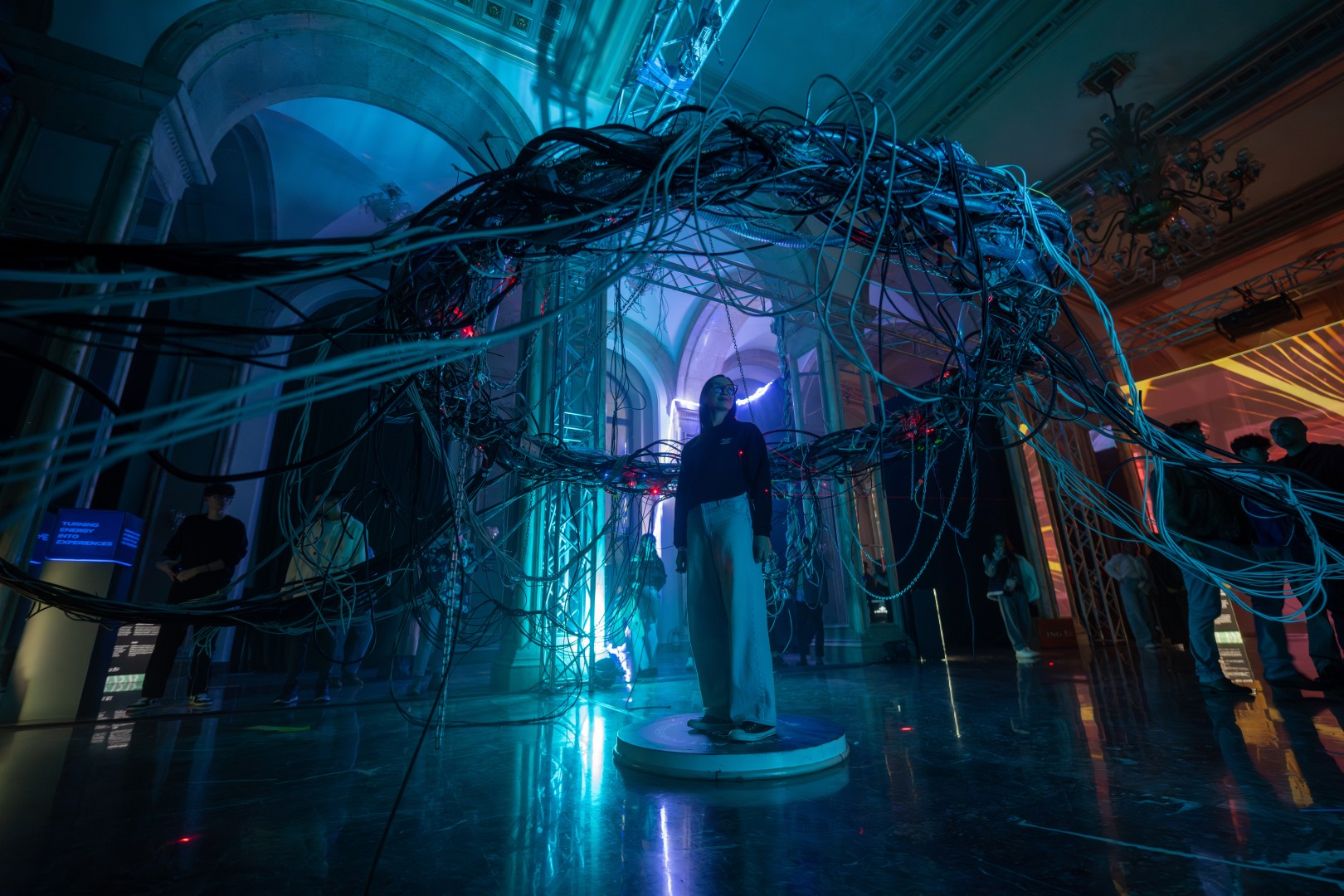 Art installations showcased at Radar, the New Media Art Festival, held at the Casa Presei Libere in Bucharest, Romania, on October 3, 2025.